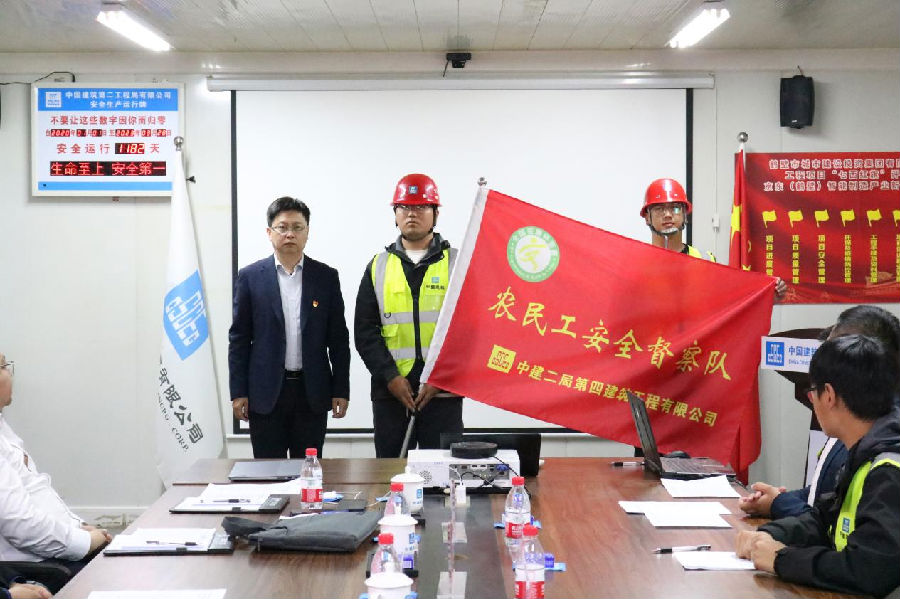 孫文治為農(nóng)民工安全督察隊授旗