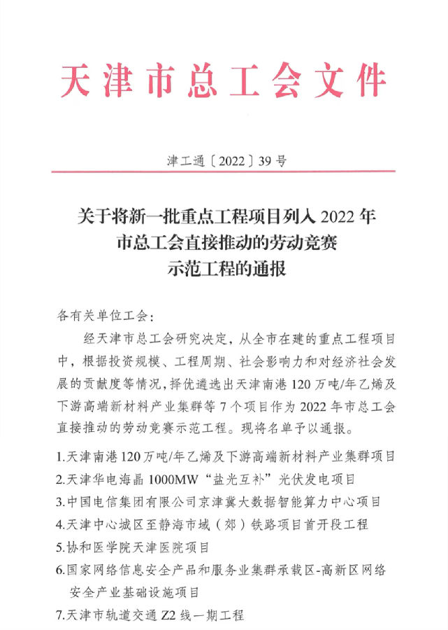 近日,公司天津網(wǎng)絡(luò)安全中心項目獲評2022年天津市勞動競賽示范工程。該獎項根據(jù)投資規(guī)模、工程周期、社會影響力和對經(jīng)濟社會發(fā)展的貢獻度等情況,從全市在建的重點工程項目中擇優(yōu)遴選,并發(fā)放一次性工作補助資金20萬元。天津市僅有7個項目成功入選,公司天津網(wǎng)絡(luò)安全中心項目榮列其中。