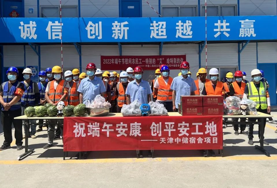 華北分公司天津中儲宿舍項目舉辦“特別的‘艾’給特別的你”慰問農(nóng)民工活動。項目員工將親手制作的印有“平平、安安”等吉祥物圖案的艾草香包及西瓜、礦泉水、粽子、雞蛋等物品送給持續(xù)奮戰(zhàn)在施工現(xiàn)場的三百余名一線工人,讓農(nóng)民工兄弟們度過一個溫情涌動的端午節(jié)。
