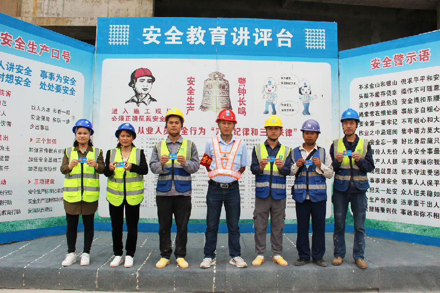 項目依托入場三級安全教育對入場工人進行全覆蓋的安全培訓。通過開展“安全宣誓”、“親情呼喚安康”、“五比一促”安全技能比武等活動,充分發揚安全至上、精益求精的工匠精神,引導職工踐行安康伴我行的理念。每周開展危險源認領,實施危險源網格化管理,安全生產責任到人,堅決落實管理人員同作息制度,持續開展“一消滅一落實”制度,全過程貫徹“16條強制性標準”,“中建二局十條禁令”落實安全生產責任全覆蓋。加強了班組安全建設,實現以自我管理促安全,激發了工人的積極性,增強了班組的凝聚力,提高了項目整體安全意識。