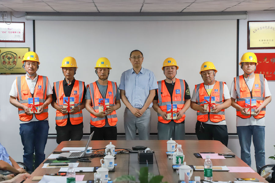 期間,與會領導為一線職工送上慰問品并合影留念,共同觀看了公司企業形象宣傳片。濱海新區總工會基層工作部相關人員,公司總部和華北分公司相關負責人,項目員工及農民工參加了本次活動。