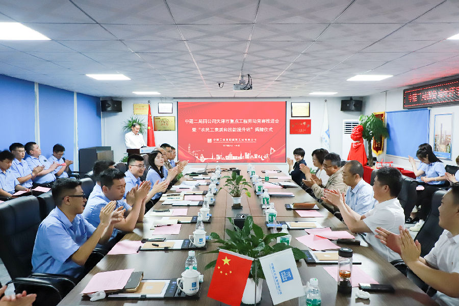 為進一步弘揚勞模精神、勞動精神、工匠精神,激發“比、學、趕、幫、超"的勞動熱情和創造活力,6月7日,中建二局四公司天津市重點工程勞動競賽推進會暨“農民工素質和技能提升站”揭牌儀式在華北分公司天津國家網絡安全中心項目圓滿舉行。