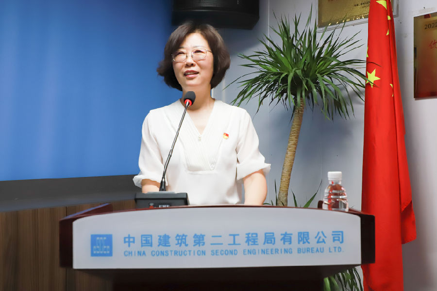 頒獎環節后,張冬青作了講話,她表示,希望中建二局四公司工會能夠繼續更好的帶動、激發一線職工的勞動熱情和創造活力,一是提高政治站位,用政治思想武裝頭腦;二是以天津市重點工程勞動競賽為契機,深入開展勞動和技能競賽活動;三是切實維護農民工合法權益,加大做好農民工服務工作。