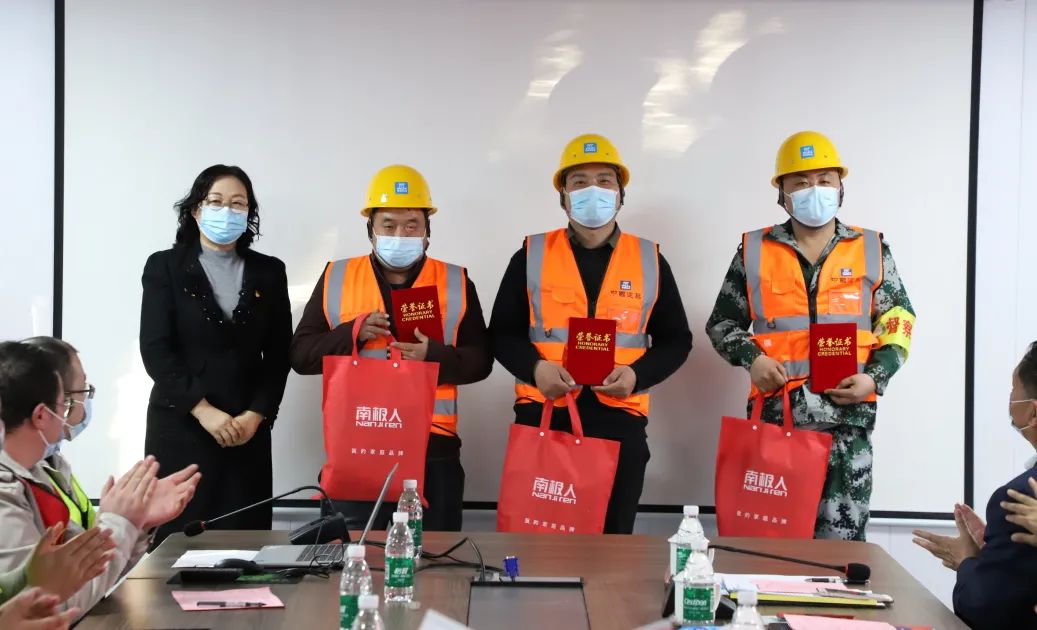濱海新區(qū)總工會(huì)黨組成員、經(jīng)審委主任李靜為行為安全之星頒發(fā)證書并贈(zèng)送慰問品。