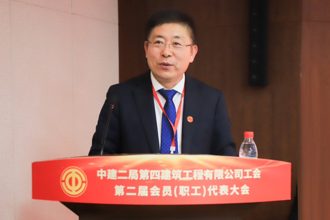 杜建波代表中建二局工會(huì)向大會(huì)的召開(kāi)予以祝賀。他表示,四公司工會(huì)堅(jiān)持以習(xí)近平新時(shí)代中國(guó)特色社會(huì)主義思想為指導(dǎo),深入學(xué)習(xí)貫徹習(xí)近平總書(shū)記重要講話和指示批示精神,始終堅(jiān)持融入中心、服務(wù)大局,在工會(huì)系統(tǒng)多個(gè)領(lǐng)域起到示范帶頭作用。四公司工會(huì)和廣大工會(huì)干部要不忘初心、牢記使命,強(qiáng)化思想政治引領(lǐng),持續(xù)深化中國(guó)工會(huì)十八大精神的實(shí)踐運(yùn)用,把牢工會(huì)工作正確方向。深刻把握工會(huì)組織在黨和國(guó)家工作大局中的使命任務(wù),緊密?chē)@國(guó)家重大戰(zhàn)略、重大工程、重大項(xiàng)目、重點(diǎn)產(chǎn)業(yè),聚焦局“高品質(zhì)履約年”各項(xiàng)目標(biāo)任務(wù),履行央企社會(huì)責(zé)任,深化產(chǎn)業(yè)工人隊(duì)伍建設(shè)改革,堅(jiān)持服務(wù)職工為本,滿(mǎn)足職工群眾對(duì)美好生活的需要,提升廣大職工幸福指數(shù),提高工會(huì)工作能力和水平。