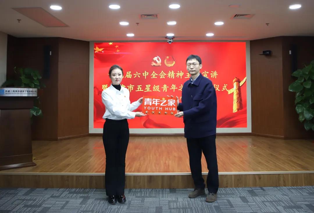 濱海新區(qū)團委副書記馮晶為公司團委“五星級青年之家”授牌。